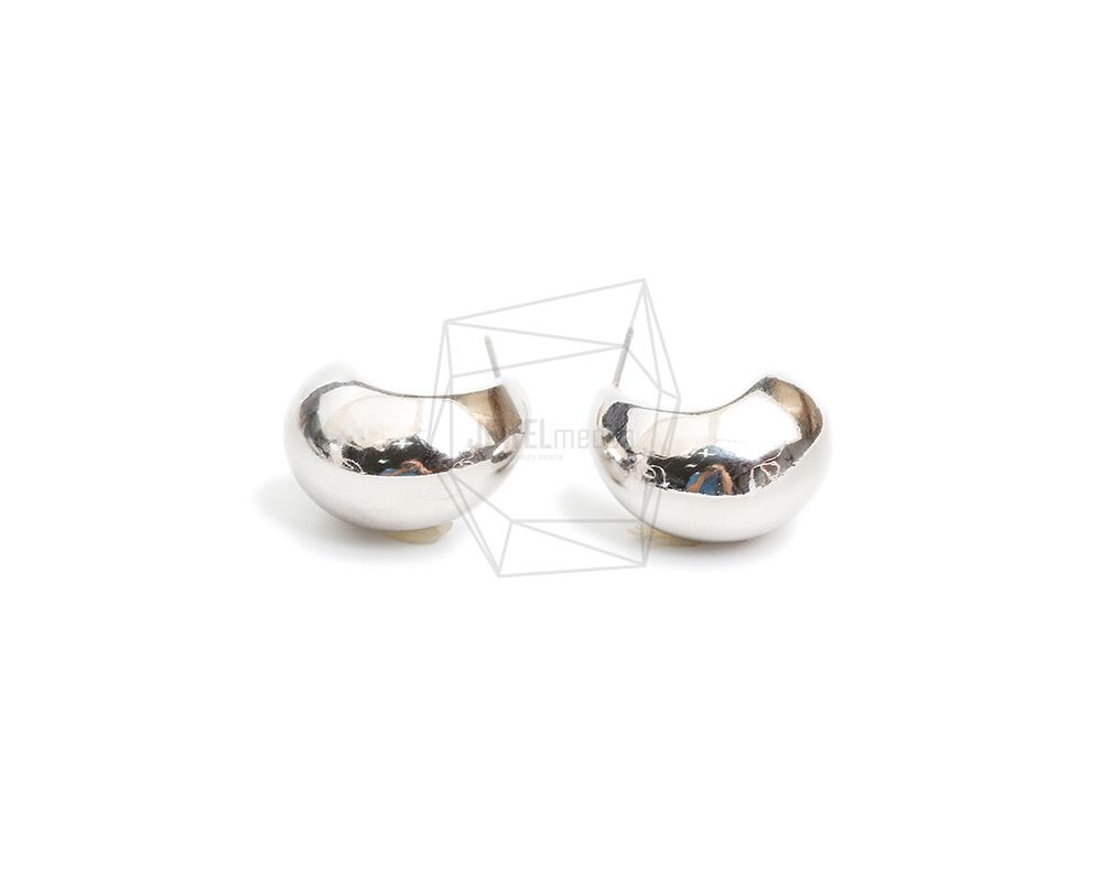 ERG-2141-R/2PCS/L shape post Earring/16mm x 22.8mm/Rhodium Plated Over tin/Titanium post