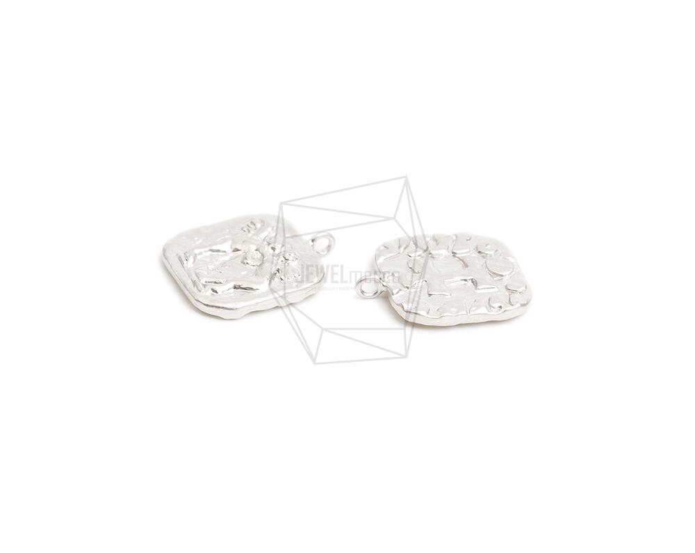 PDT-2614-MR/2PCS/Square angel Pendant/15.5mm X 18.5mm/Matte Rhodium Plated Over Brass