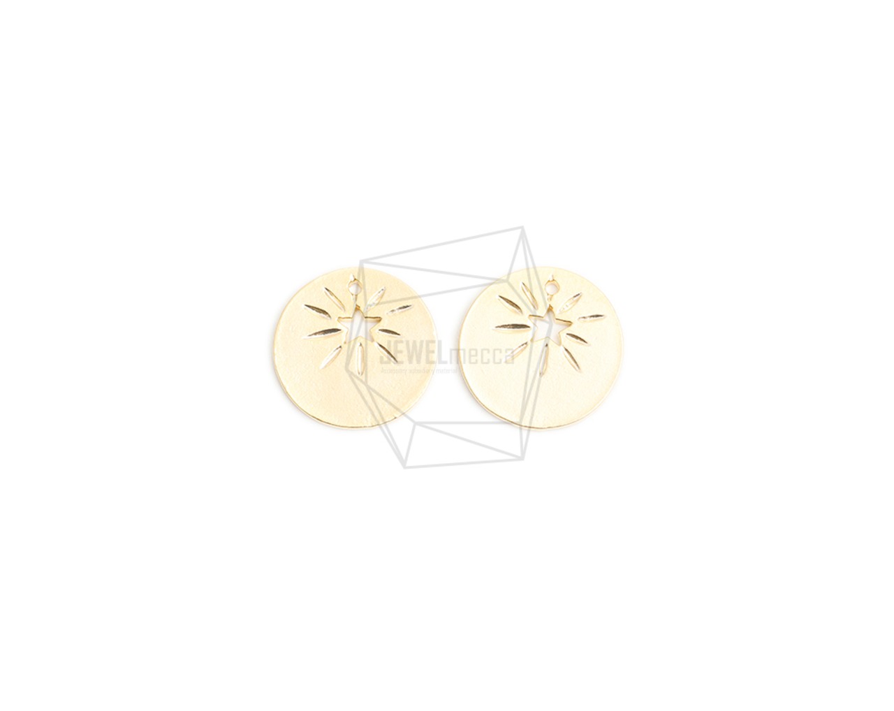 PDT-2616-MG/2PCS/Round Coin Pendant/14mm X 14mm/Matte Gold Plated Over Brass