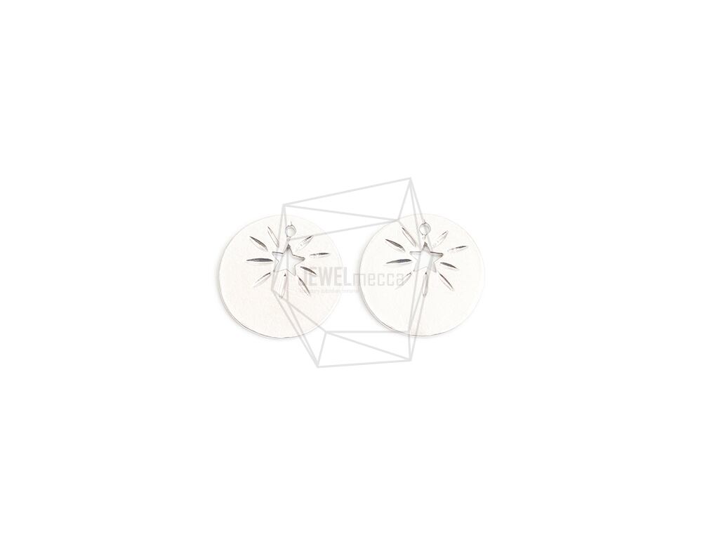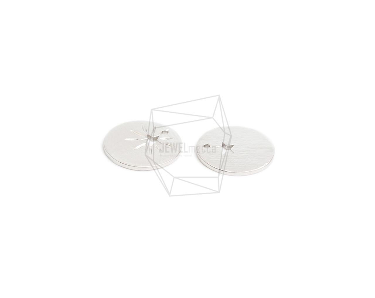 PDT-2616-MR/2PCS/Round Coin Pendant/14mm X 14mm/Matte Rhodium Plated Over Brass