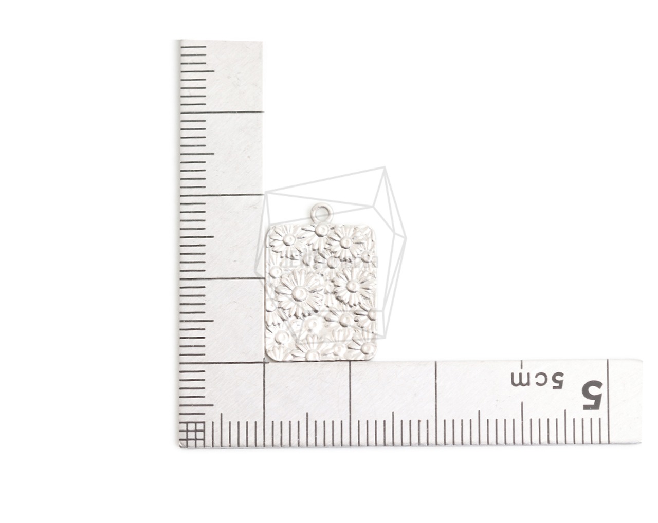 PDT-2617-MR/2PCS/Square Coin Pendant/13mm X 19mm/Matte Rhodium Plated Over Brass