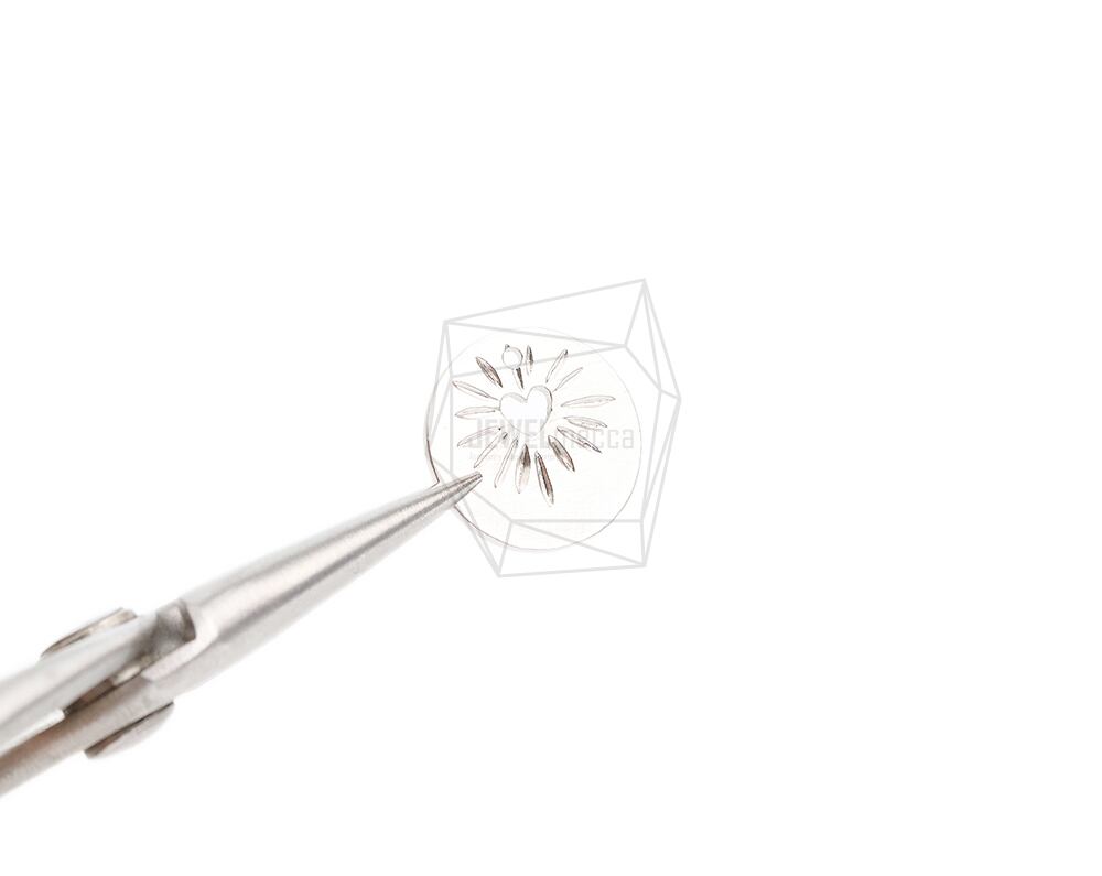 PDT-2618-MR/2PCS/Round Coin Pendant/14mm X 14mm/Matte Rhodium Plated Over Brass