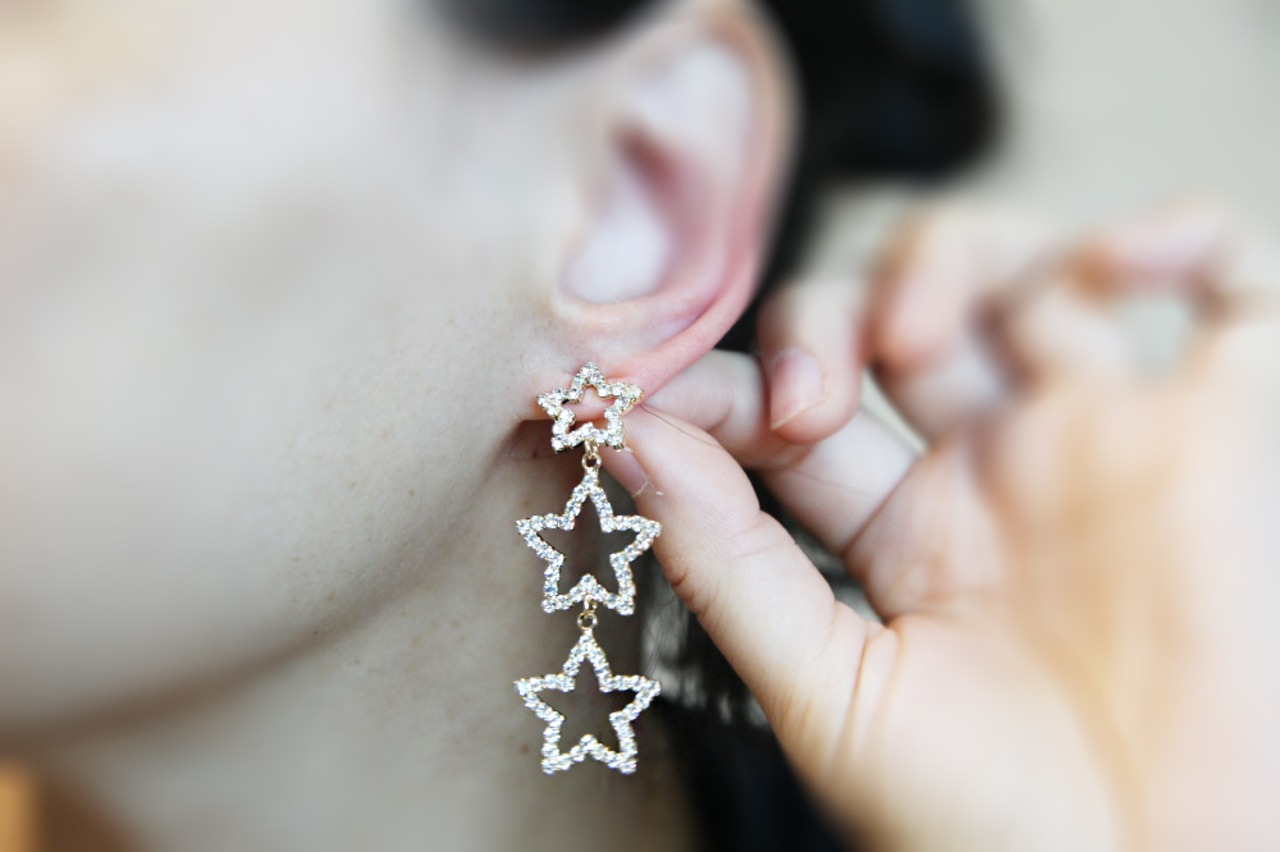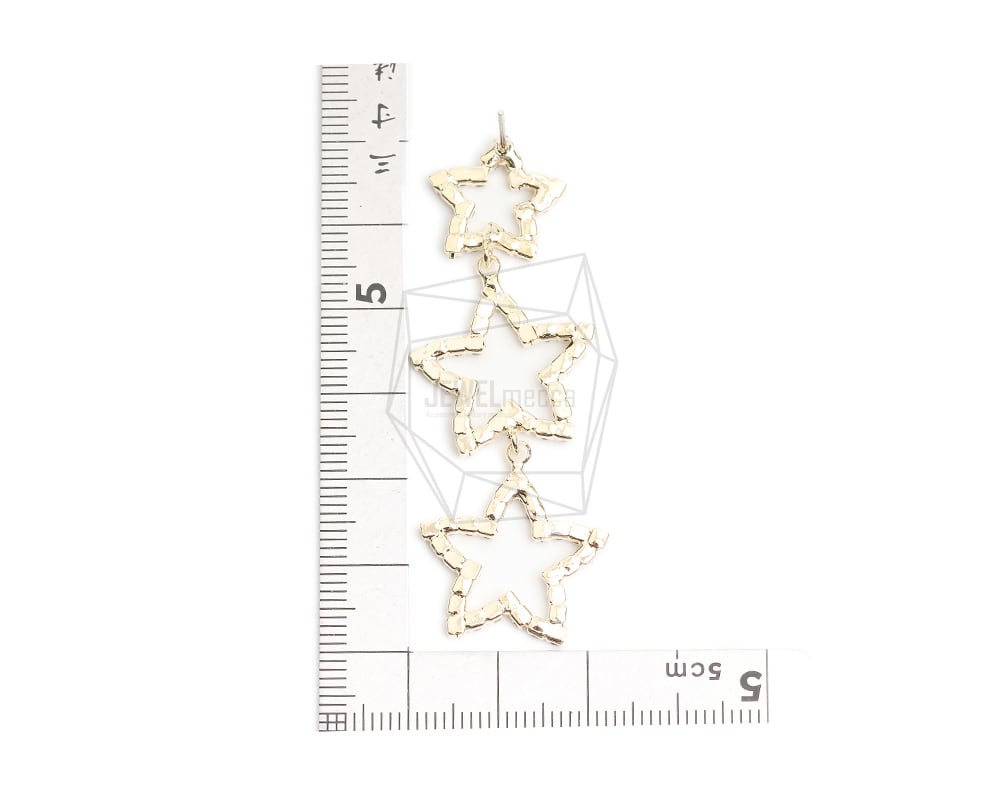 ERG-2144-G/2PCS/Triple Star EarringsStar Earrings/21mm x 60mm/Gold Plated Over Brass
