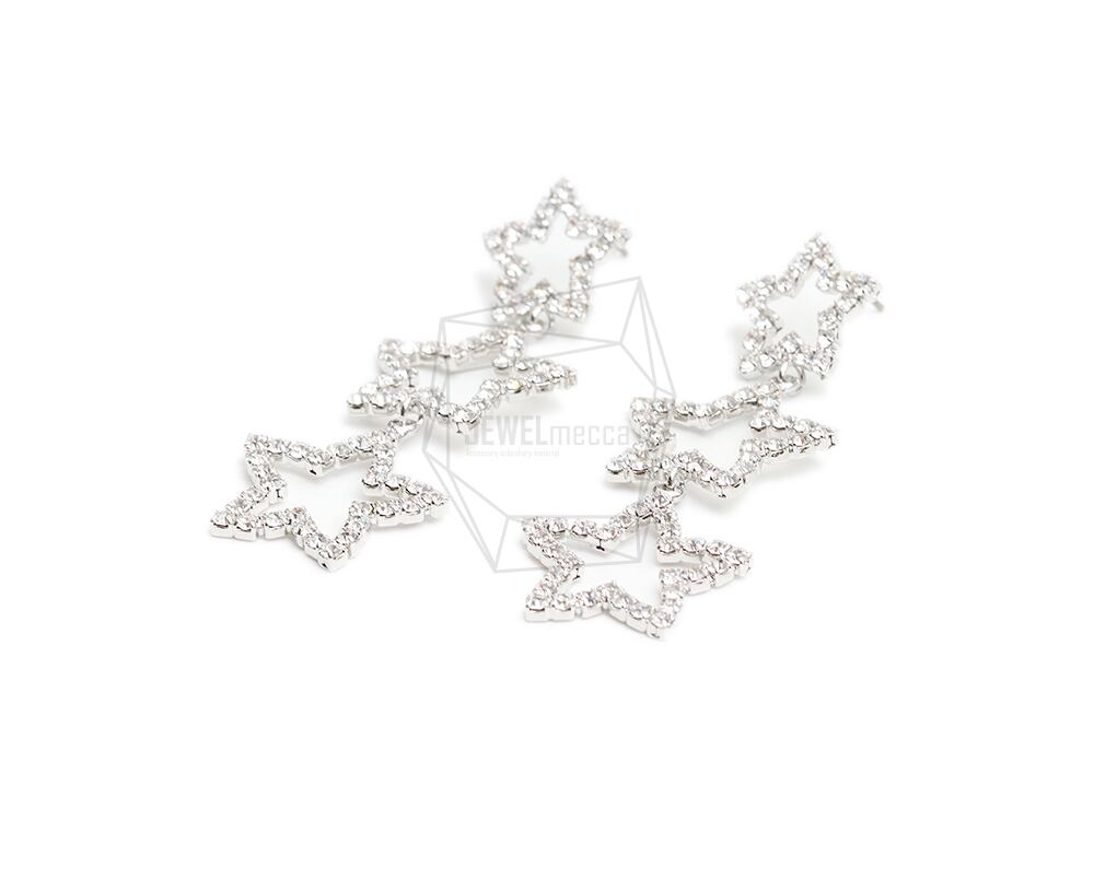 ERG-2144-R/2PCS/Triple Star EarringsStar Earrings/21mm x 60mm/Rhodium Plated Over Brass