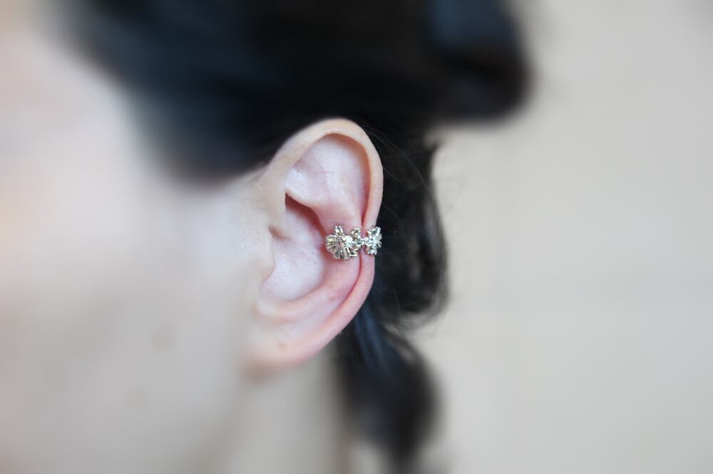 ERG-2148-R/2PCS/Round Earcuffs Earrings/13.5mm X 13.5mm/Rhodium Plated Over Tin