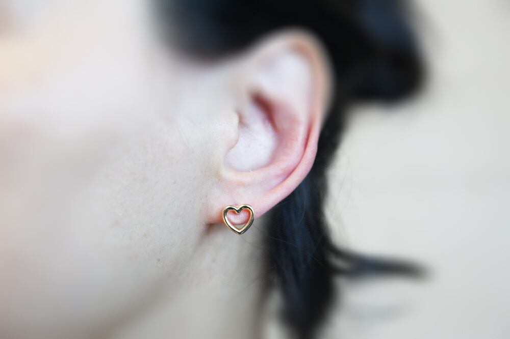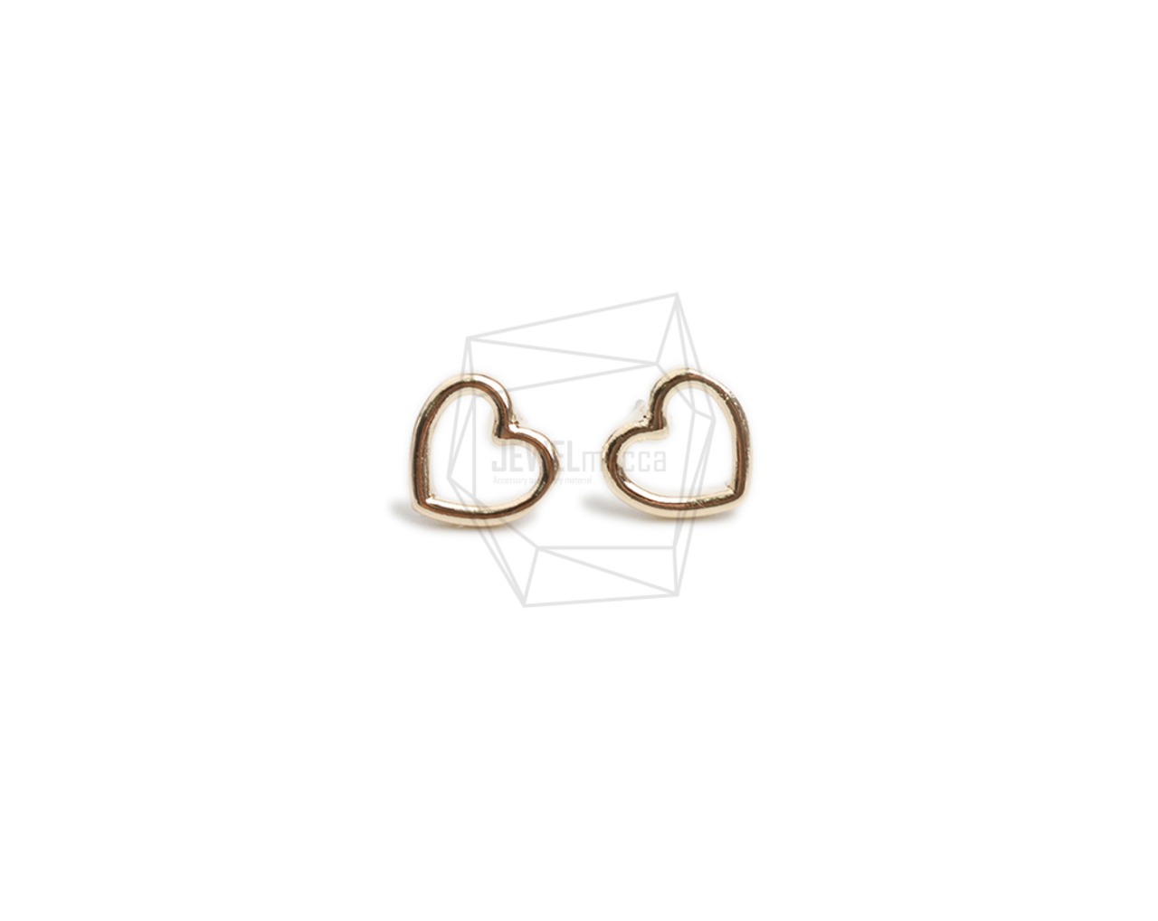 ERG-2181-G/2Pcs-Heart Ear Post/ 9.9mm x 10.5mm/Gold Plated over Tin/Stainless Post