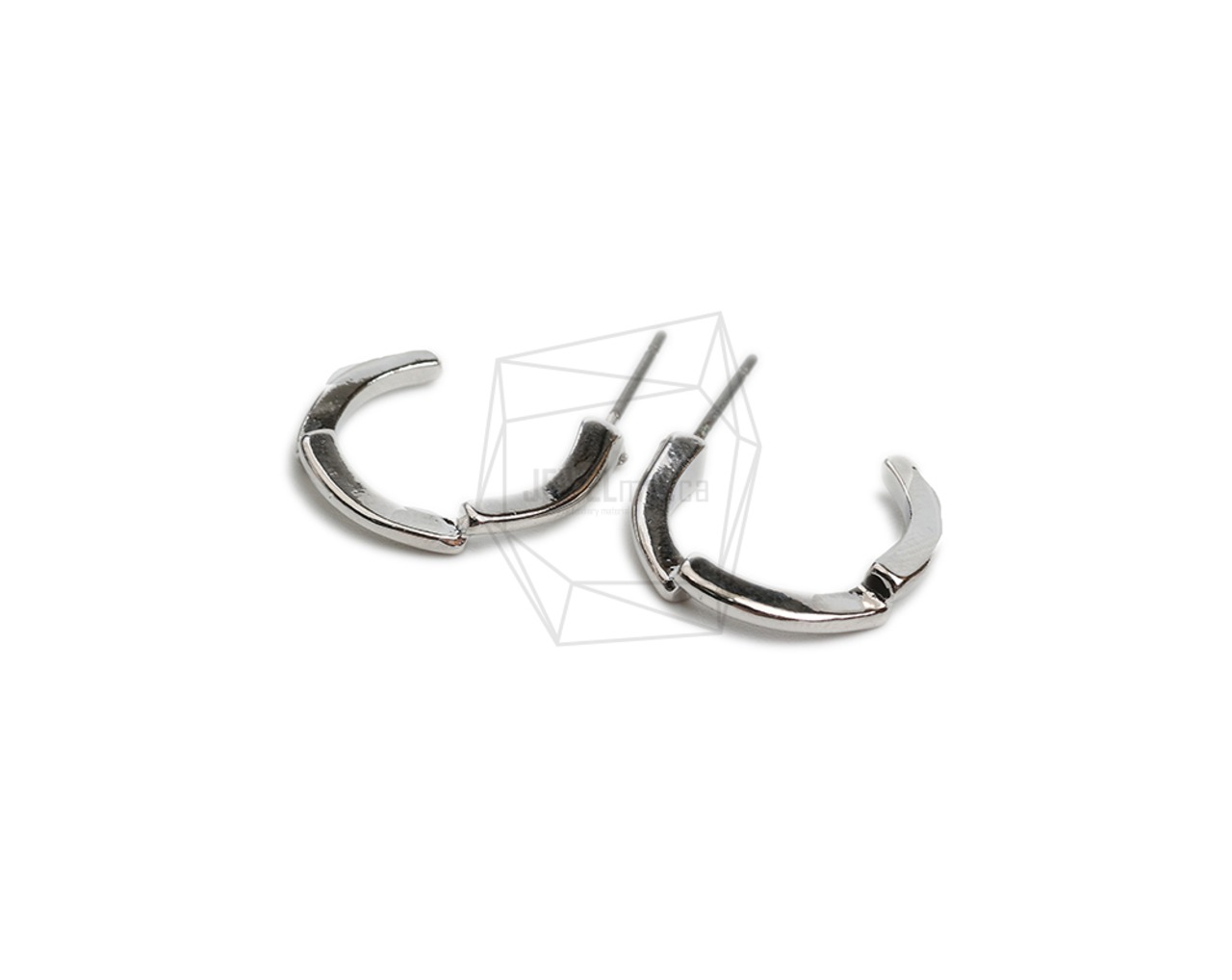 ERG-2183-R/2PCS/Round Post Earring/ 15.2mm X 17.8mm/Rhodium Plated Over Tin,Stainless Post