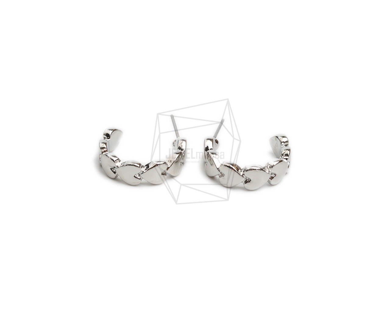 ERG-2184-R/2PCS/Round Post Earring/ 15.5mm X 18.7mm/Rhodium Plated Over Tin,Stainless Post