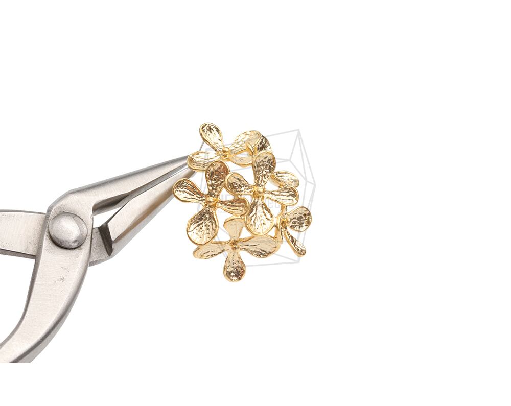 ERG-2188-MG/2Pcs-Multi Round flower Ear Post/ 23mm x 26mm /Matte Gold Plated over Brass/925 sterling silver post