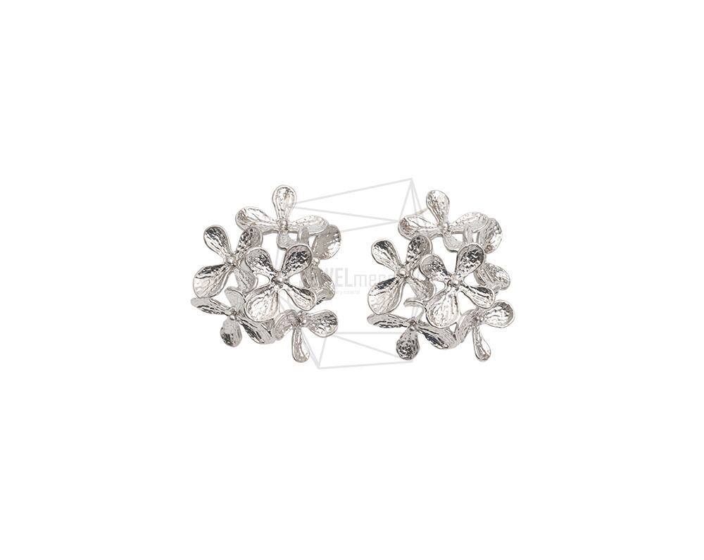 ERG-2188-MR/2Pcs-Multi Round flower Ear Post/ 23mm x 26mm /Matte Rhodium Plated over Brass/925 sterling silver post