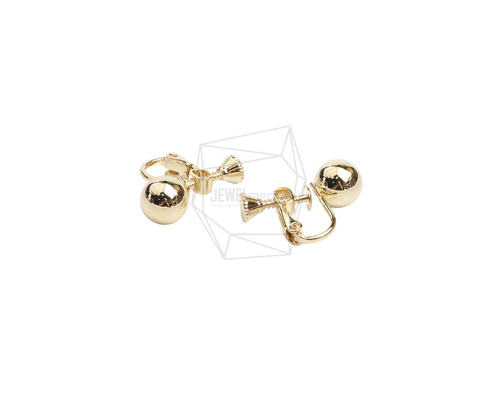ERG-2196-G/2PCS/Ball round Non Pierced Screw Back Clips Earring