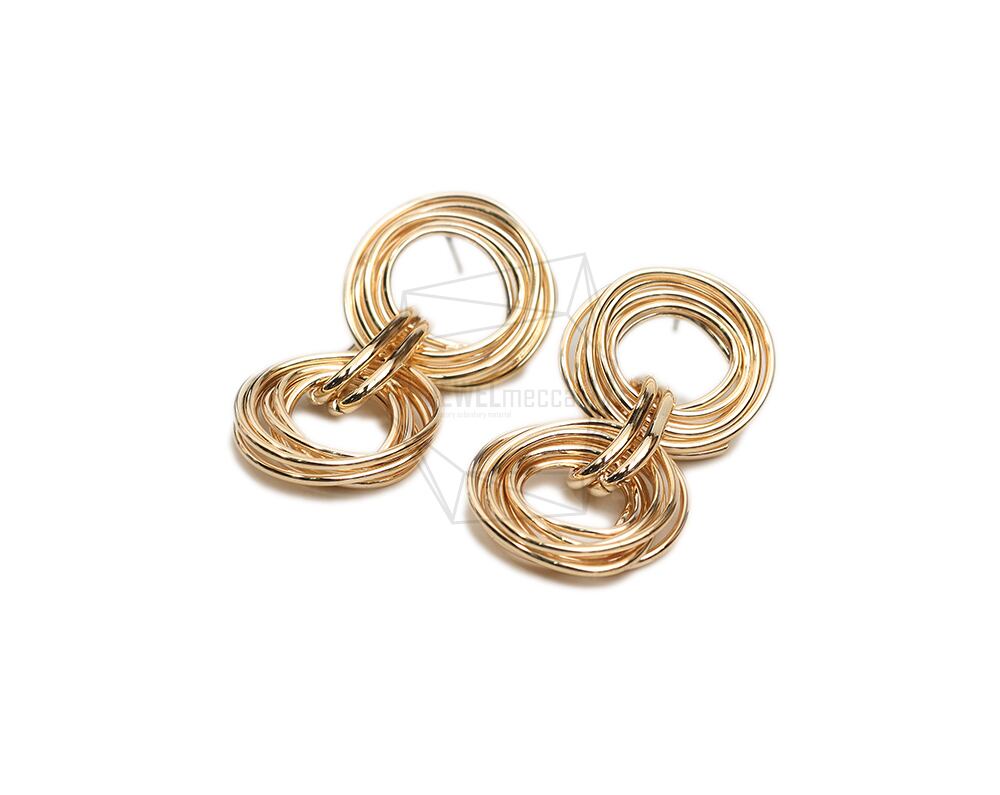 ERG-2201-G/2Pcs-Multi Round Links Post Earring / 18.8mm x 40mm /Gold Plated over brass,Titanium post