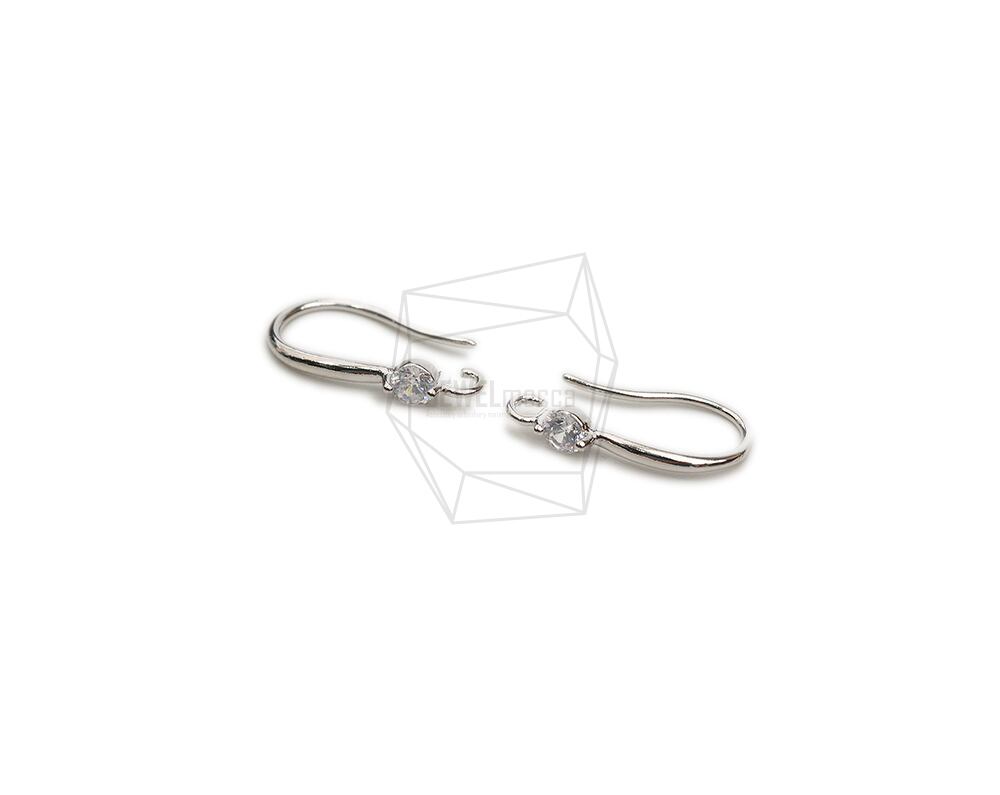 ERG-2205-R/2pcs/French Hook Earrings-Tiny Cubic Zirconia Earring Wires-Fishhook-Earring Findings