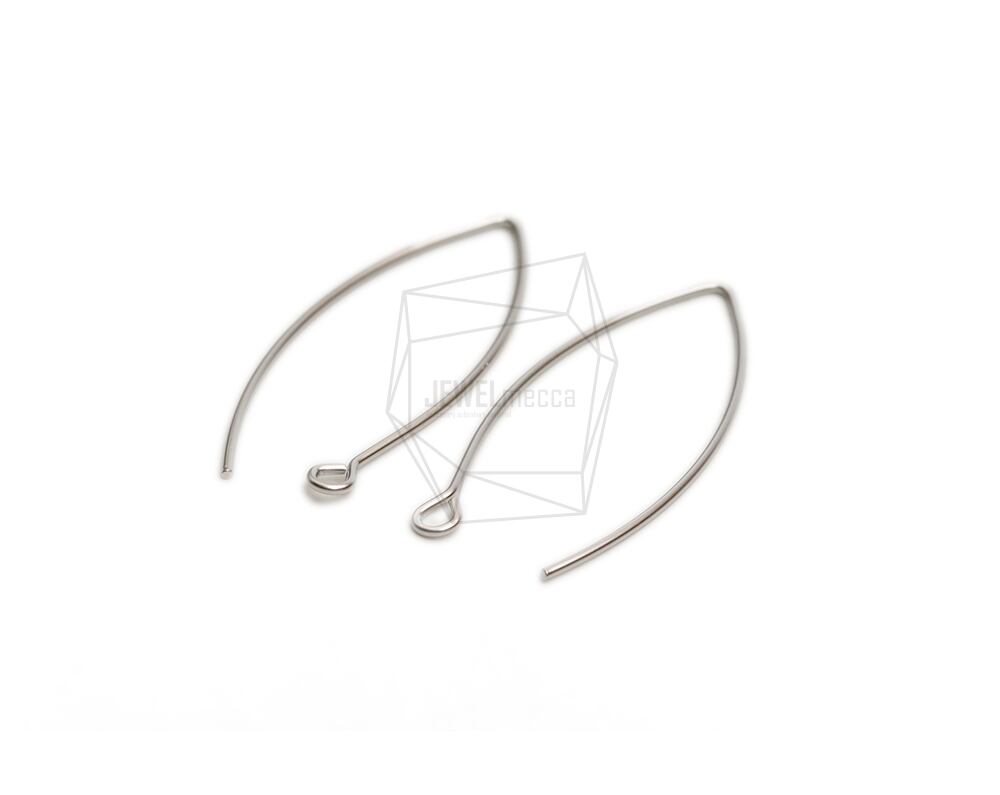 ERG-2206-MR/4PCS/Bent Wire Ear Hook/16mm x 42mm/Matte Rhodium Plated over Brass