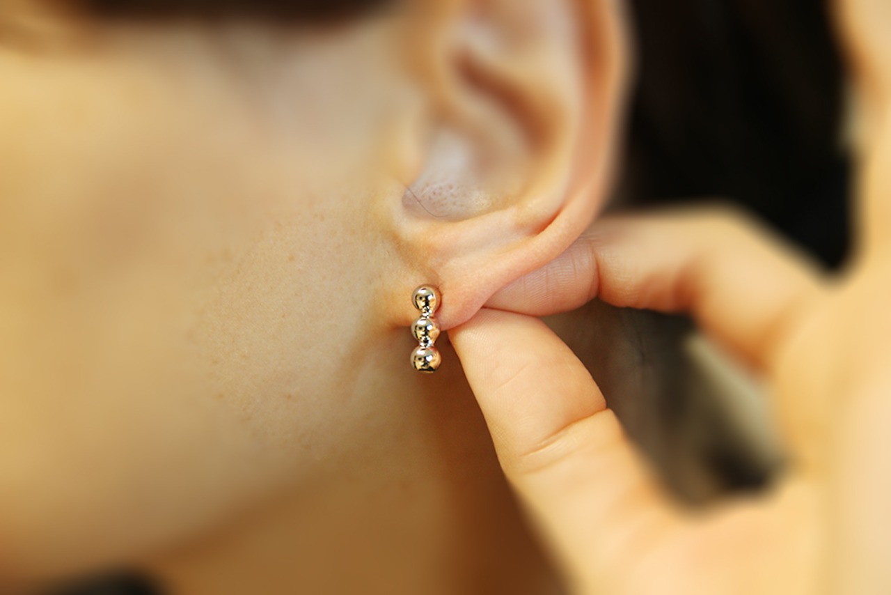 ERG-2211-R/2PCS/Ball Post Earring/4.8mm X 14.6mm/Rhodium Plated Over Tin,Stainless Post
