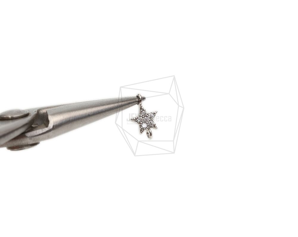 PDT-2639-R/2Pcs- Cubic Zirconia Setting Star Pendant/ 6mm X 9mm/Rhodium Plated over brass