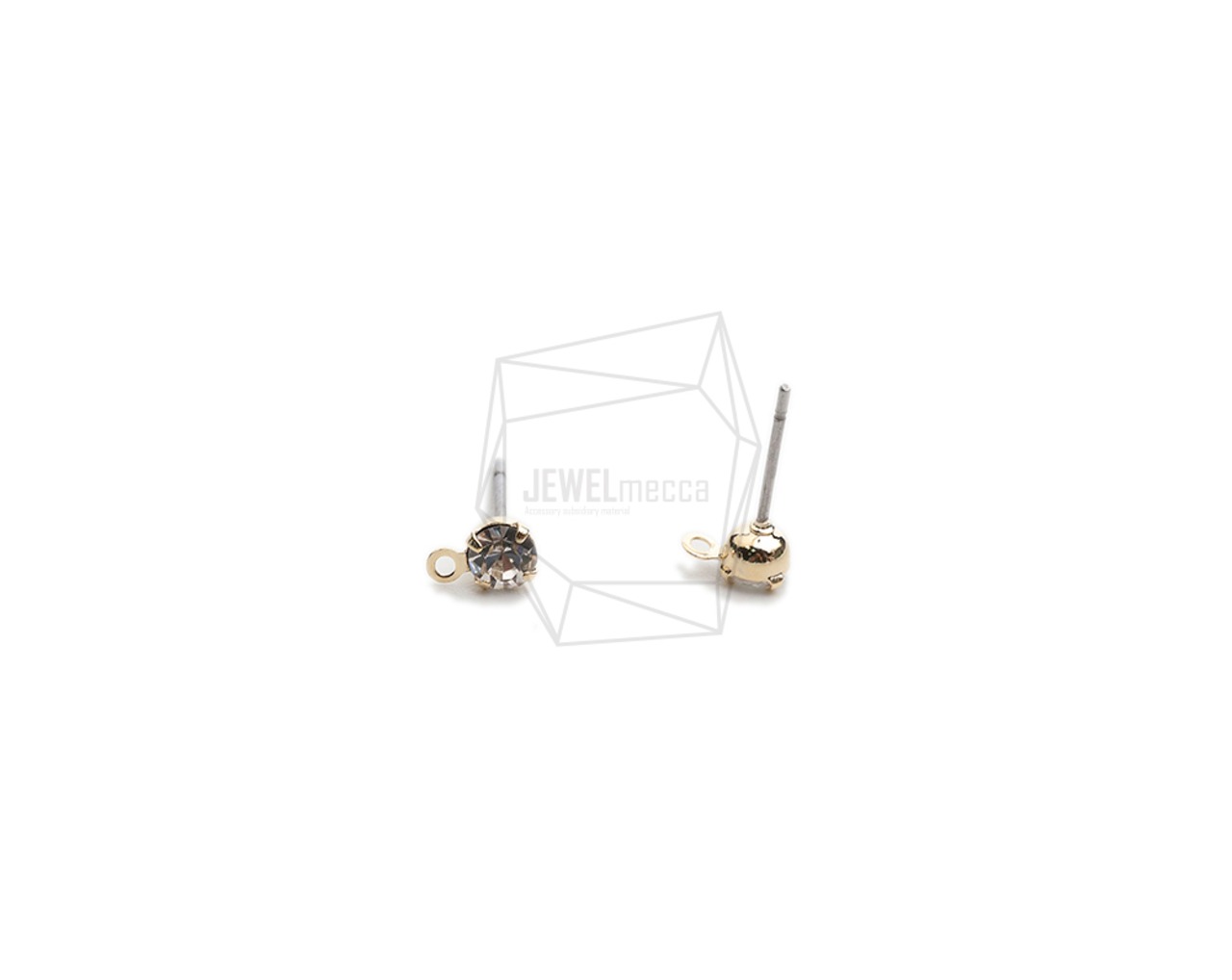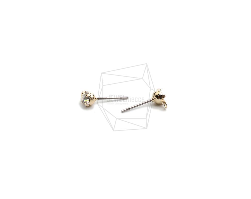 ERG-2221-G/4pcs/Cubic Stud Earrings/4mm x 6.4mm/Gold Plated Over Brass,Stainless Post