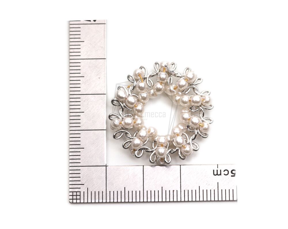 ERG-2235-R/2PCS/Pearl round Post Earring /30mm X 30mm/Rhodium Plated Over Brass,Imitation pearl