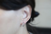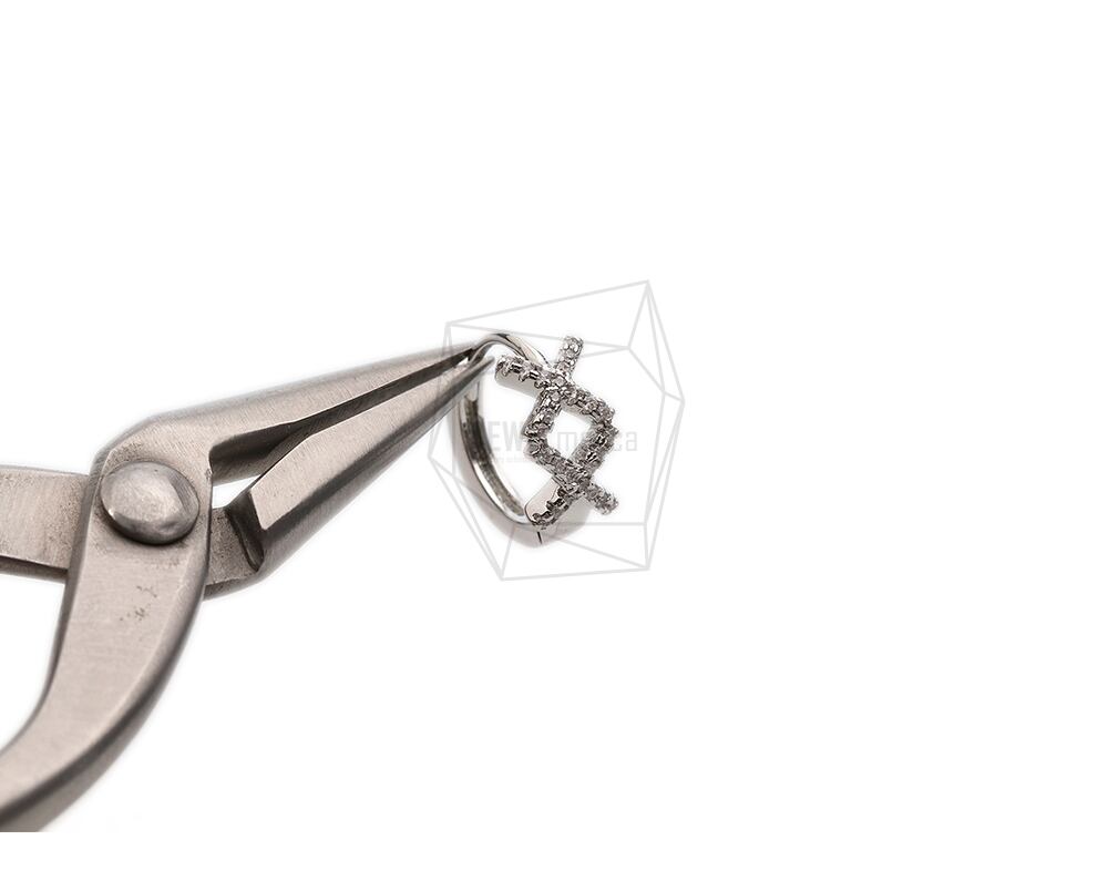 ERG-2239-R/2PCS/Round CZ One touch Post Earring/13.8mm X 15mm/Rhodium Plated Over Brass,CZ