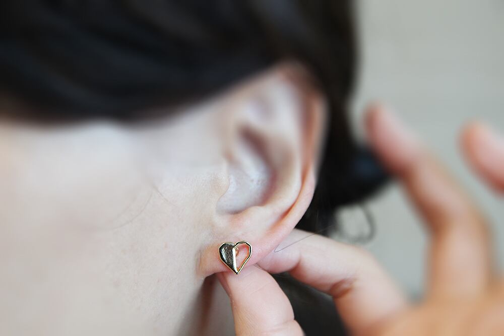 ERG-2250-G/2Pcs-Heart Ear Post/ 9.4mm x 9.7mm/Gold Plated over Tin,Stainless Post
