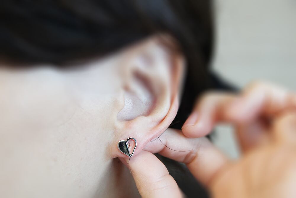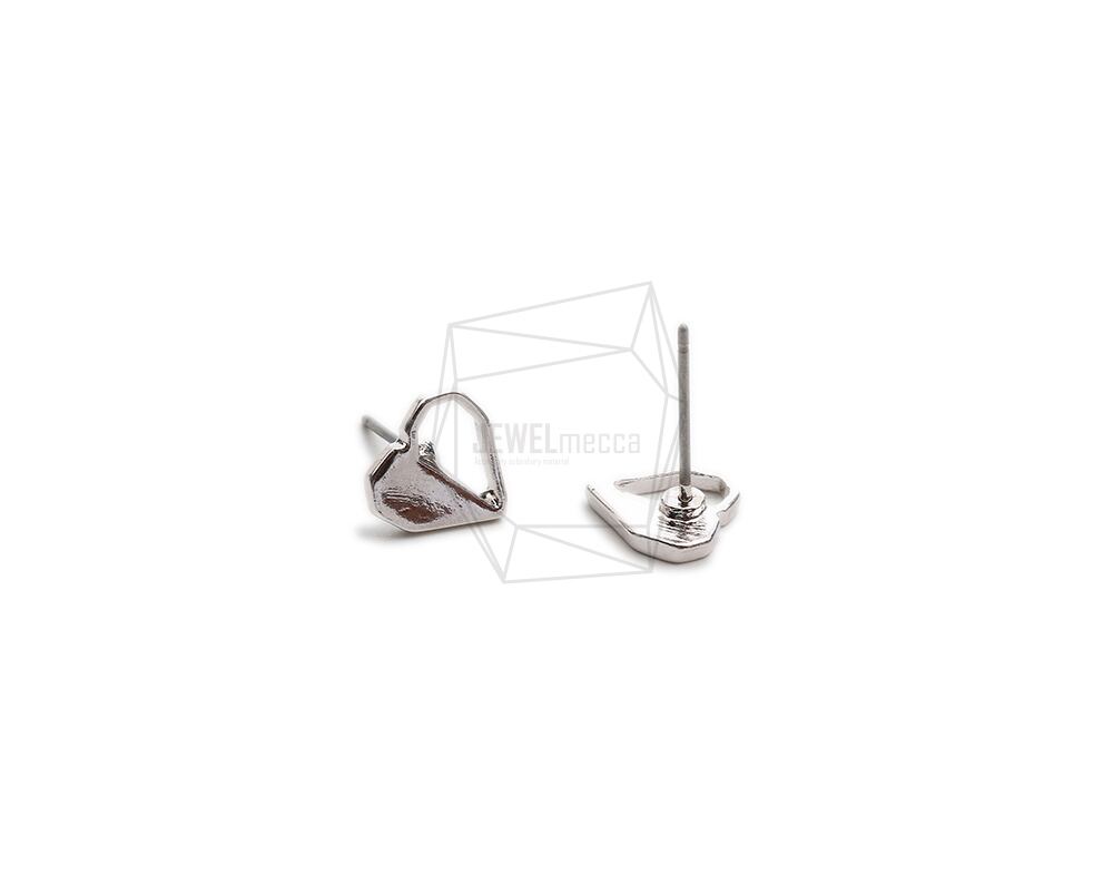 ERG-2250-R/2Pcs-Heart Ear Post/ 9.4mm x 9.7mm/Rhodium Plated over Tin,Stainless Post