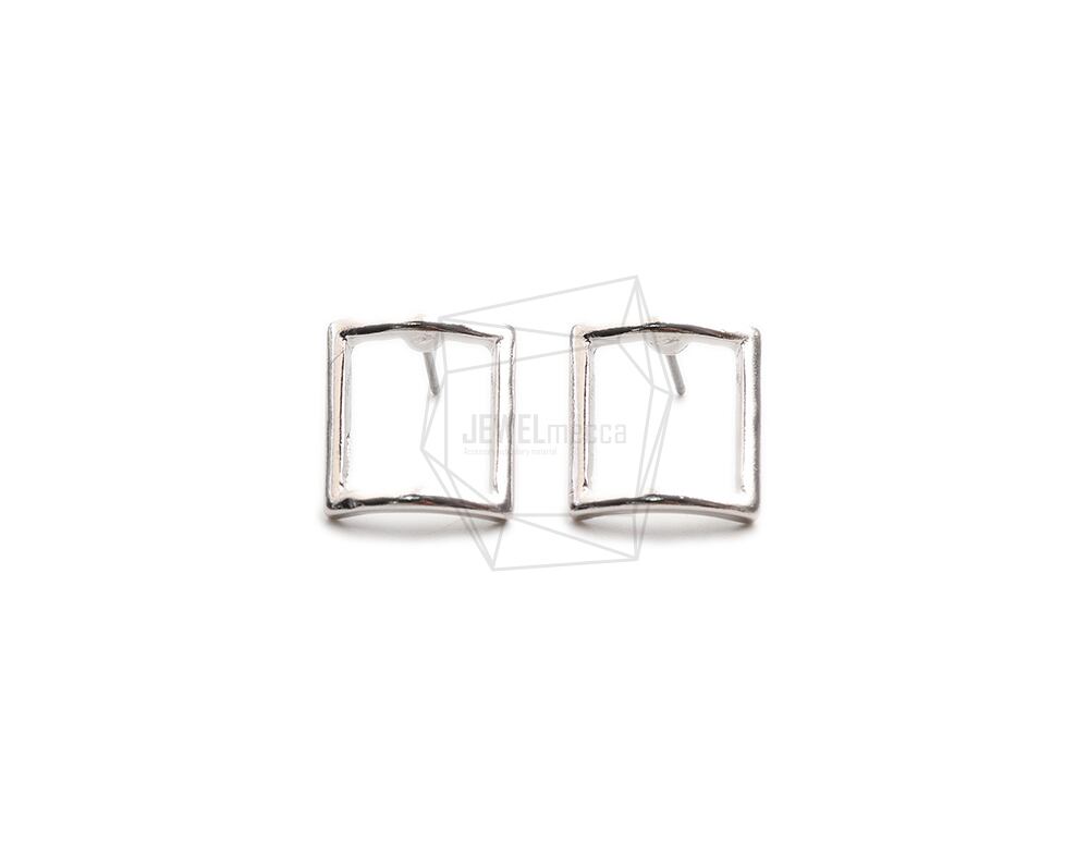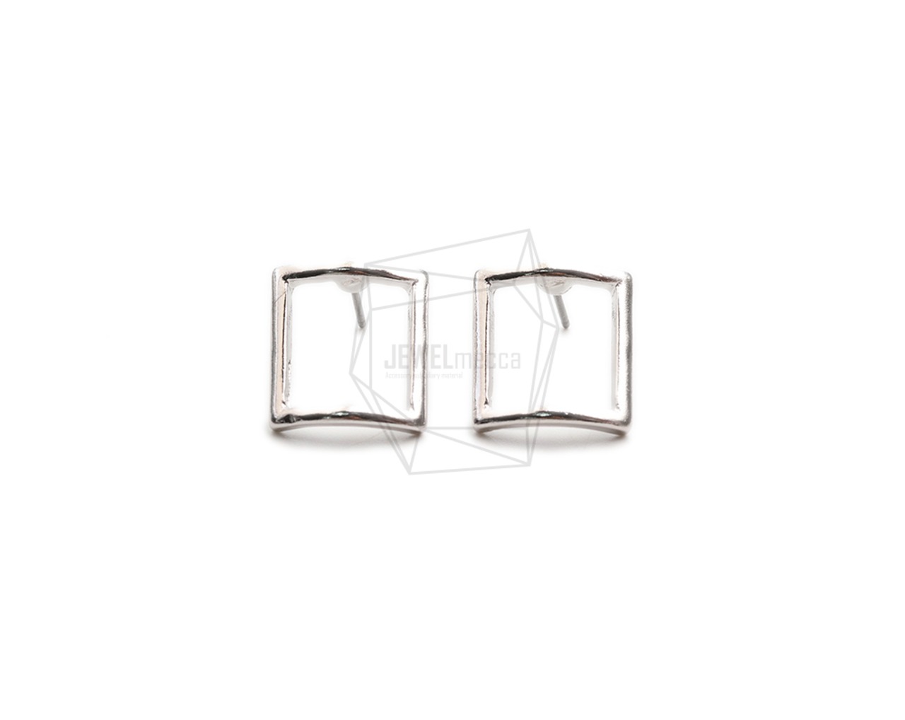 ERG-2252-R/2PCS/Square Post Earring/13.8mm X 15mm/Rhodium Plated Over Tin,Stainless Post