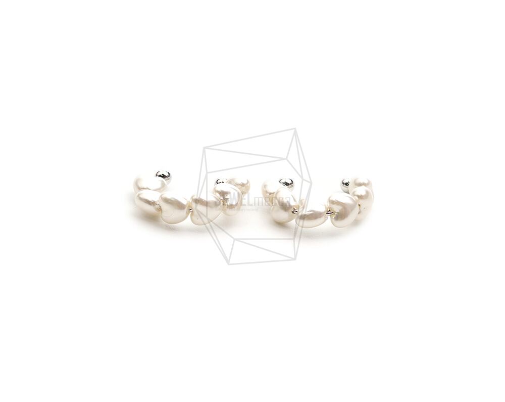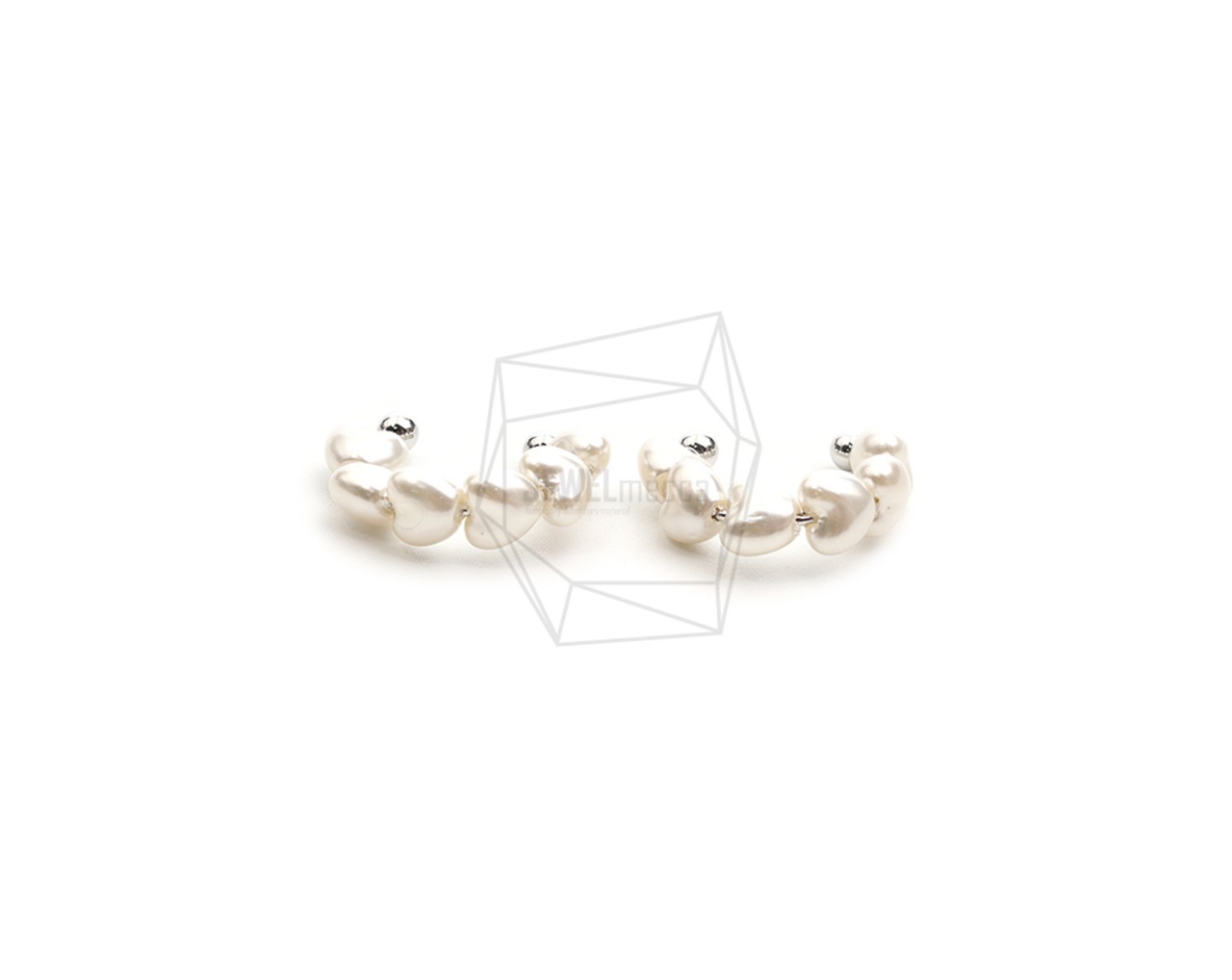 ERG-2255-R/2PCS/Round Earcuffs Earrings/16.5mm X 18mm/Rhodium Plated Over Brass,Imitation pearl