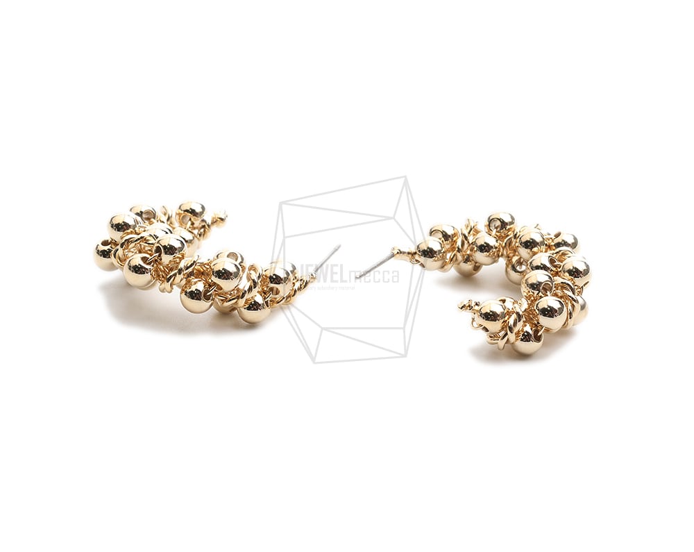ERG-2256-G/2PCS/Bubble Ball Post Earring /24mm x 30mm/Gold Plated over Brass,Titanium post