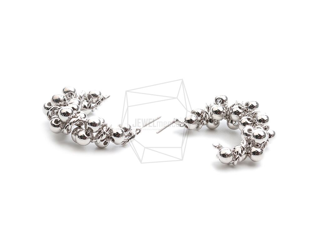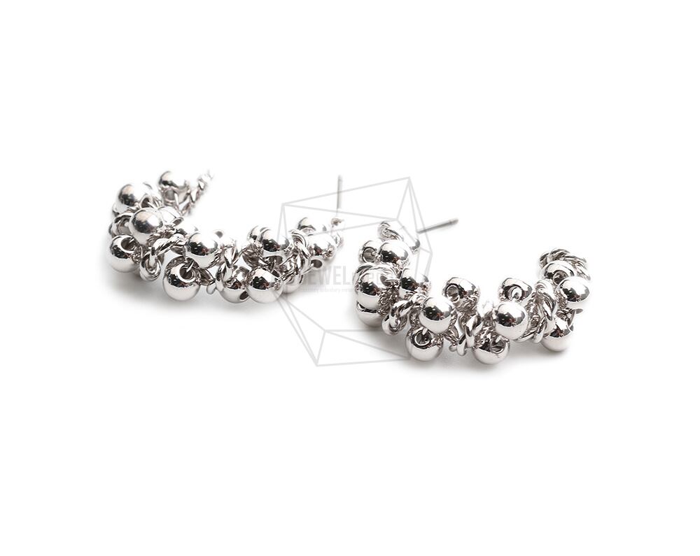 ERG-2256-R/2PCS/Bubble Ball Post Earring /24mm x 30mm/Rhodium Plated over Brass,Titanium post