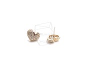 ERG-2262-G/2PCS/heart Cubic Post Earring/9.4mm X 12.3mm/Gold Plated Over Brass,Silver Post,Cubic Zirconia