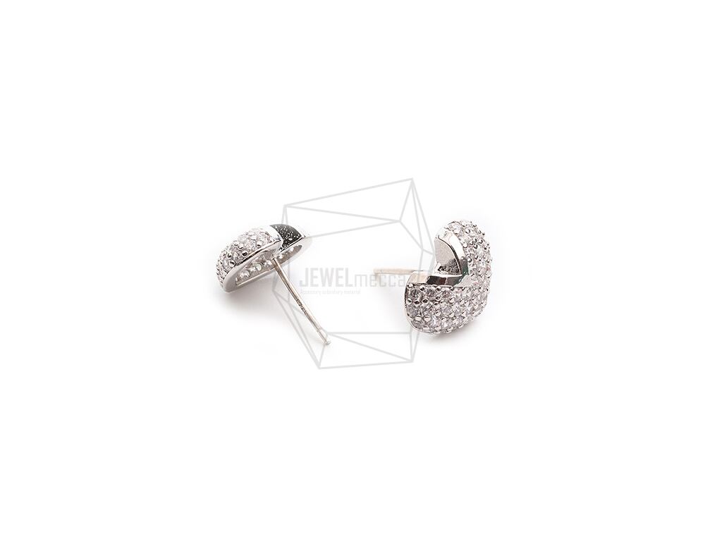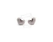 ERG-2262-R/2PCS/heart Cubic Post Earring/9.4mm X 12.3mm/Rhodium Plated Over Brass,Silver Post,Cubic Zirconia