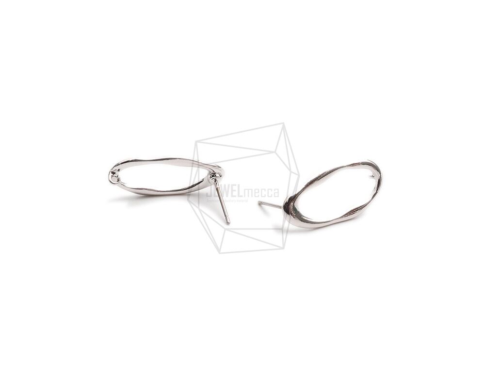 ERG-2271-R/2PCS/Oval Post Earring/11.4mm X 23mm/Rhodium Plated Over Tin,Stainless Post