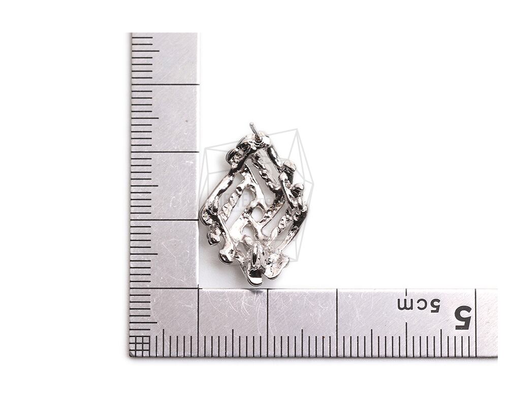 ERG-2275-R/2PCS/Rhombus Post Earring/16mm X 23mm/Rhodium Plated Over Tin,Stainless Post
