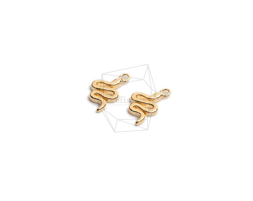 PDT-2651-G/2PCS/Snake Pendant/7mm x 12mm/Gold Plated Over Brass
