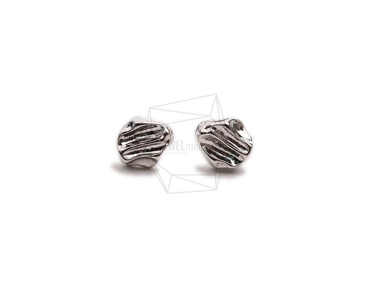 ERG-2282-R/2PCS/Hammered Earring /10mm x 11mm/Rhodium Plated Over Tin/Stainless Post