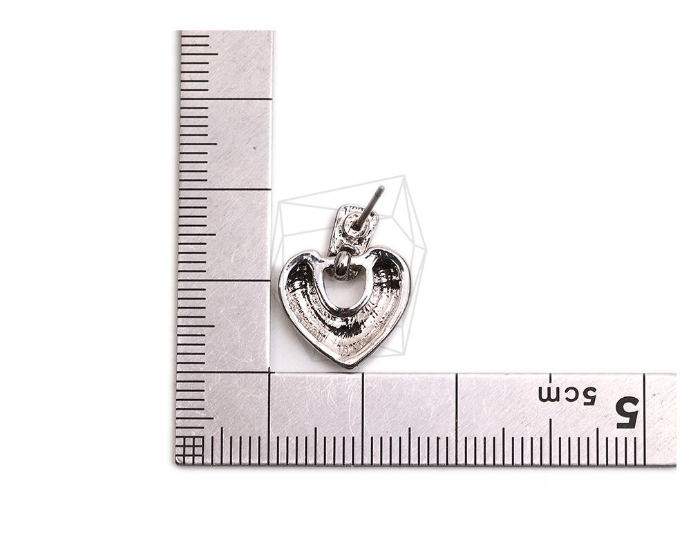 ERG-2288-R/2Pcs-Heart Ear Post/ 14.2mm x 18mm/Rhodium Plated over Tin,Stainless Post