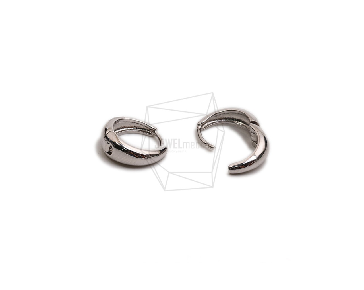 ERG-2291-R/2PCS/Round One touch Post Earring/12mm X 12.7mm/Rhodium Plated Over Brass