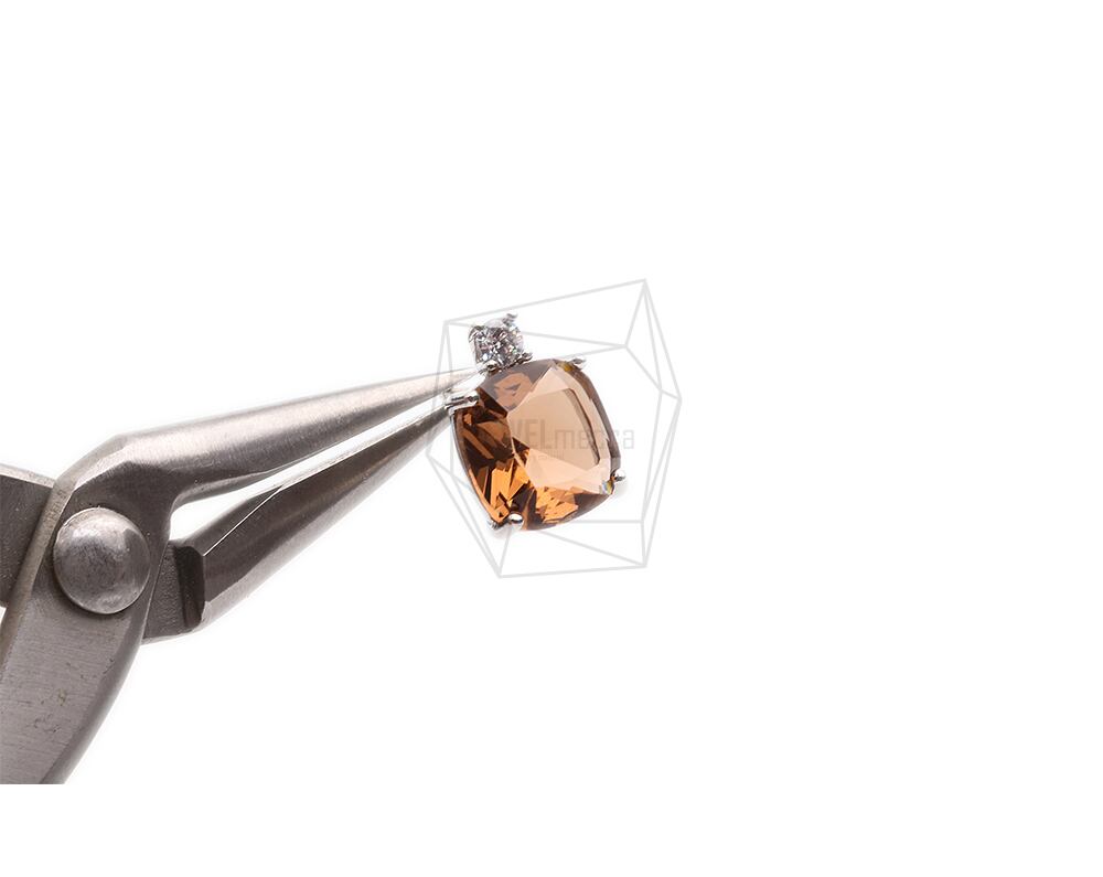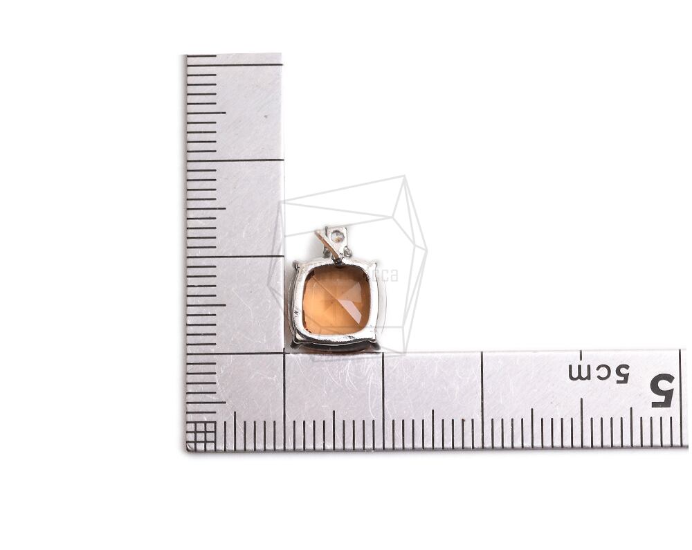ERG-2297-R/2Pcs-Square Glass Post Earring/10mmx13.4mm /Rhodium Plated over Brass