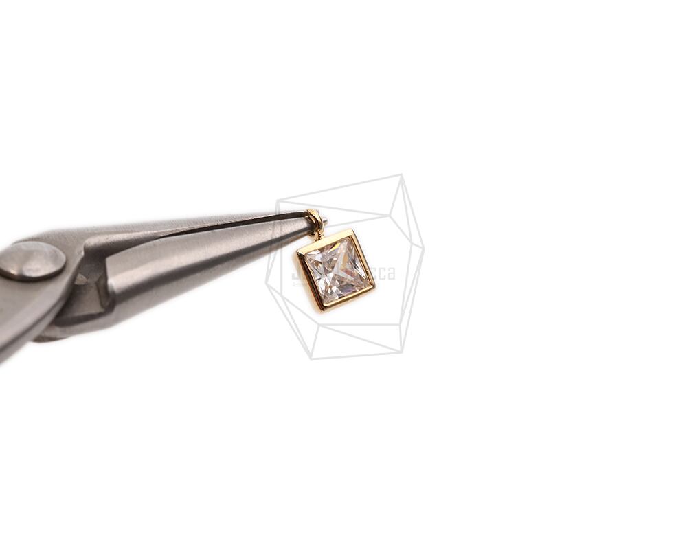 PDT-2658-G/2Pcs- Cubic Zirconia Setting Square Pendant/ 6mm X 9.3mm/Gold Plated over brass