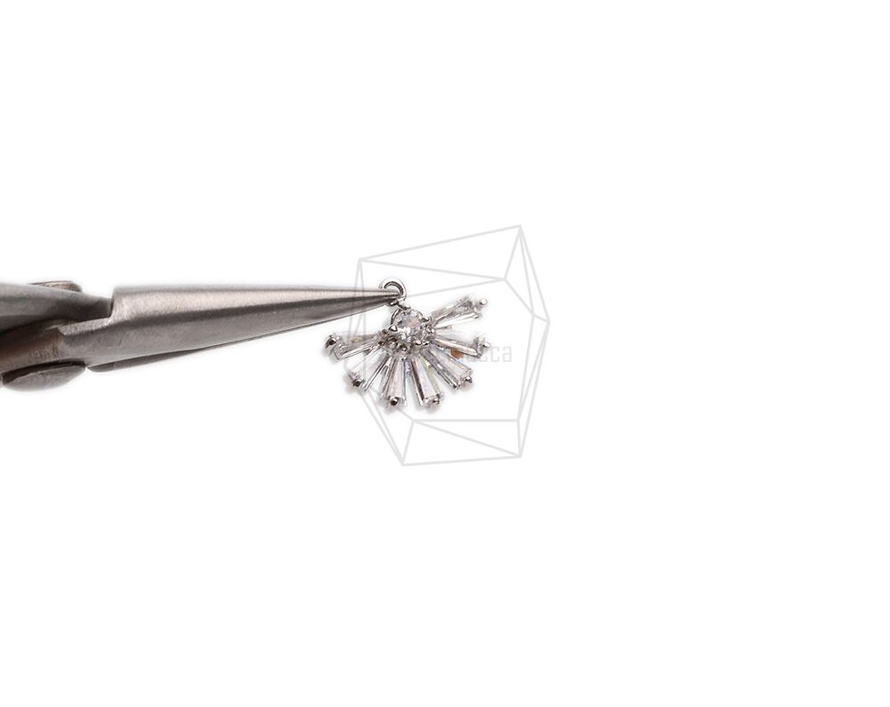PDT-2661-R/2Pcs-Fan shaped Cubic Pendant/10.5mmx13.5mm /Rhodium Plated over Brass.CZ
