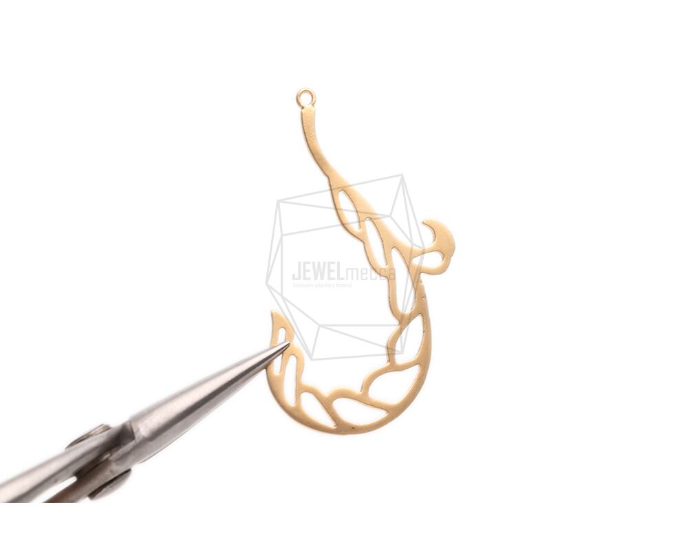 PDT-2666-MG/2PCS-Fish Hook Pendent/28mm X 43mm/Matte Gold Plated over Brass