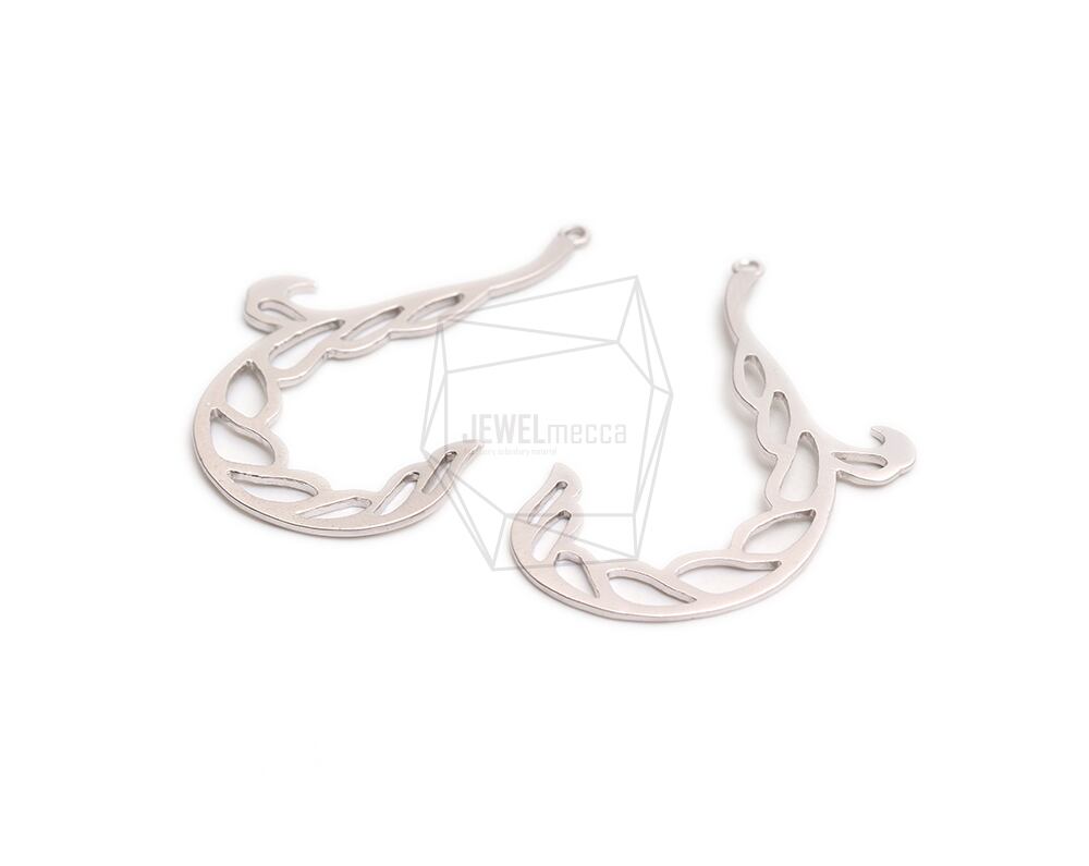 PDT-2666-MR/2PCS-Fish Hook Pendent/28mm X 43mm/Matte Rhodium Plated over Brass