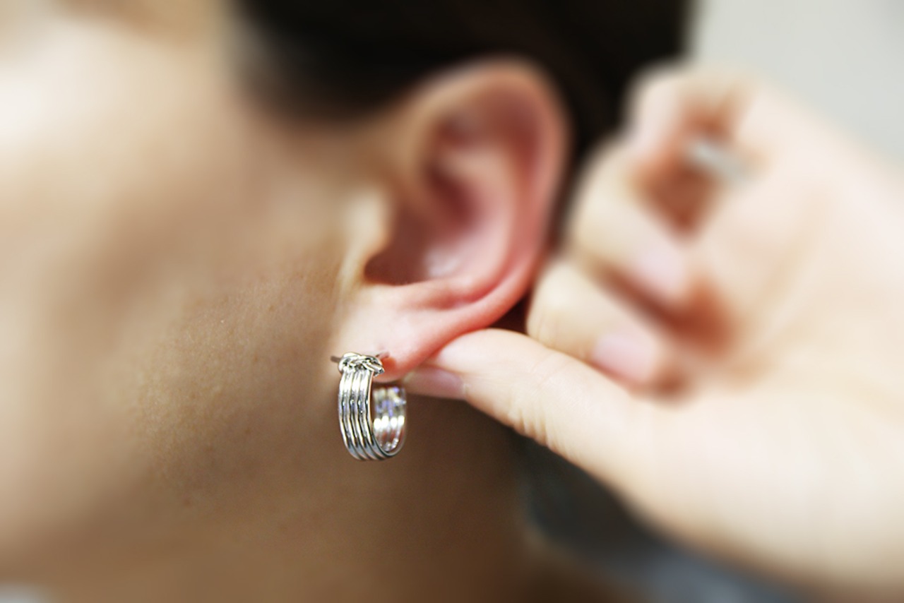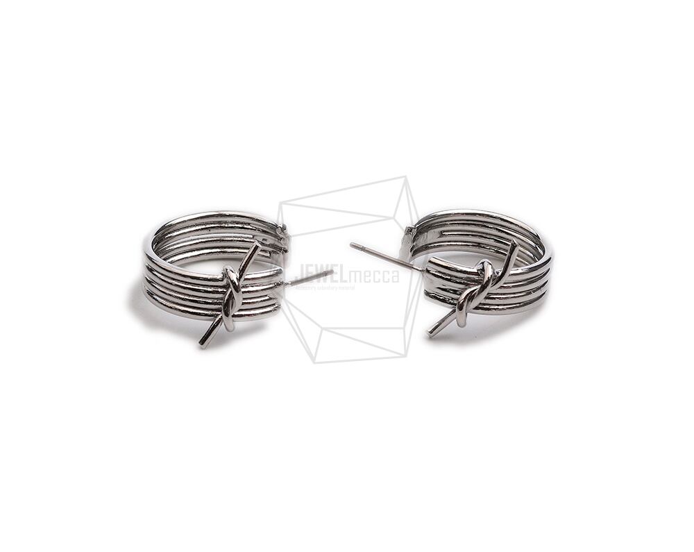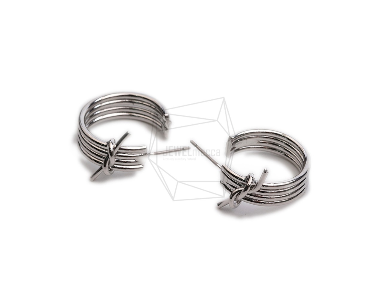 ERG-2305-R/2PCS/Round Post Earring/21.5mm X 22.5mm/Rhodium Plated Over Zinc,Stainless Post