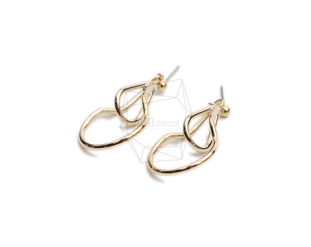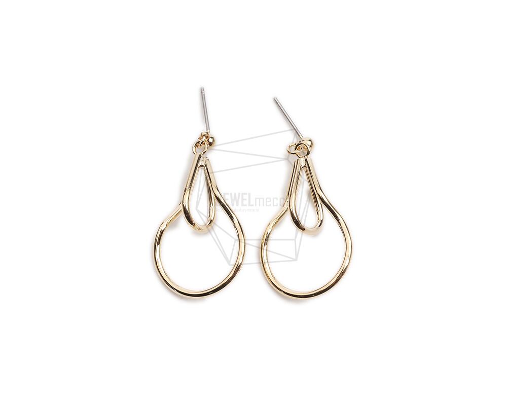 ERG-2313-G/2PCS/Oval Post Earring/19mm X 37mm/Gold Plated Over Zinc,Stainless Post