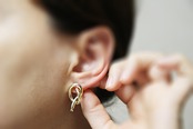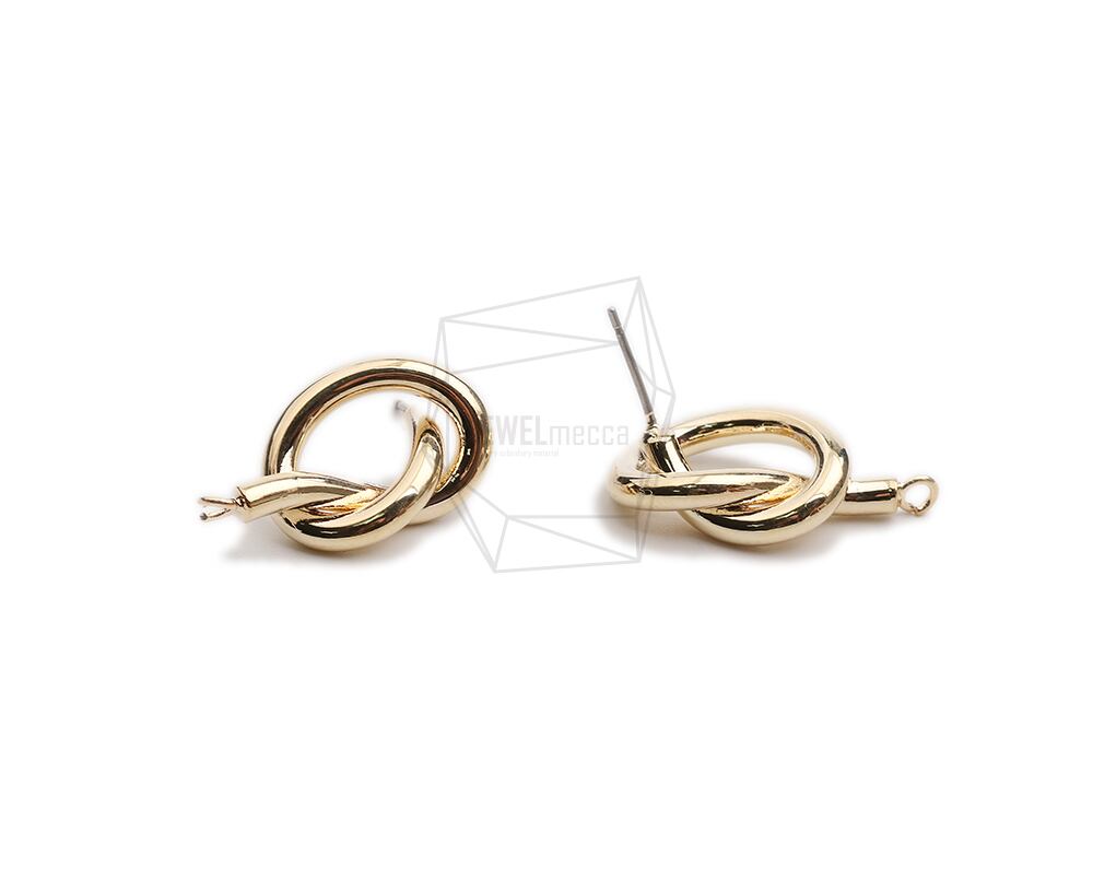 ERG-2314-G/2PCS/Knot round Post Earring/14mm X 25.6mm/Gold Plated Over Zinc,Titanium post