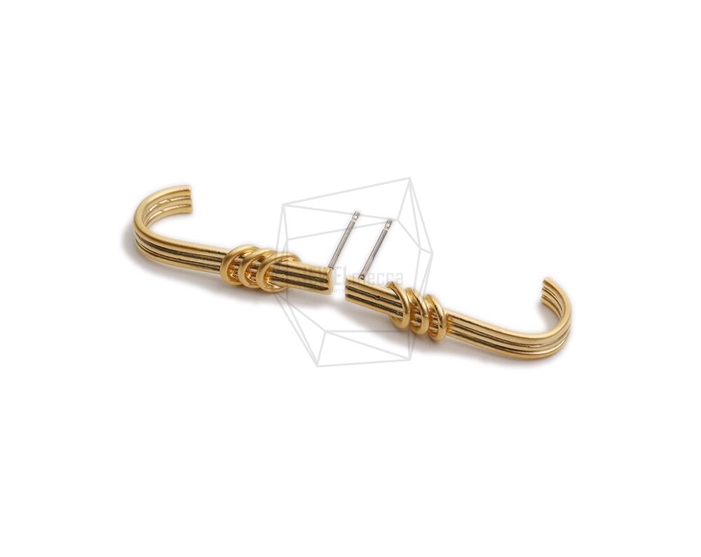 ERG-2321-MG/2PCS/J shape Post Earring/5.2mm X 24mm/Matte Gold Plated Over Brass, Silver Post