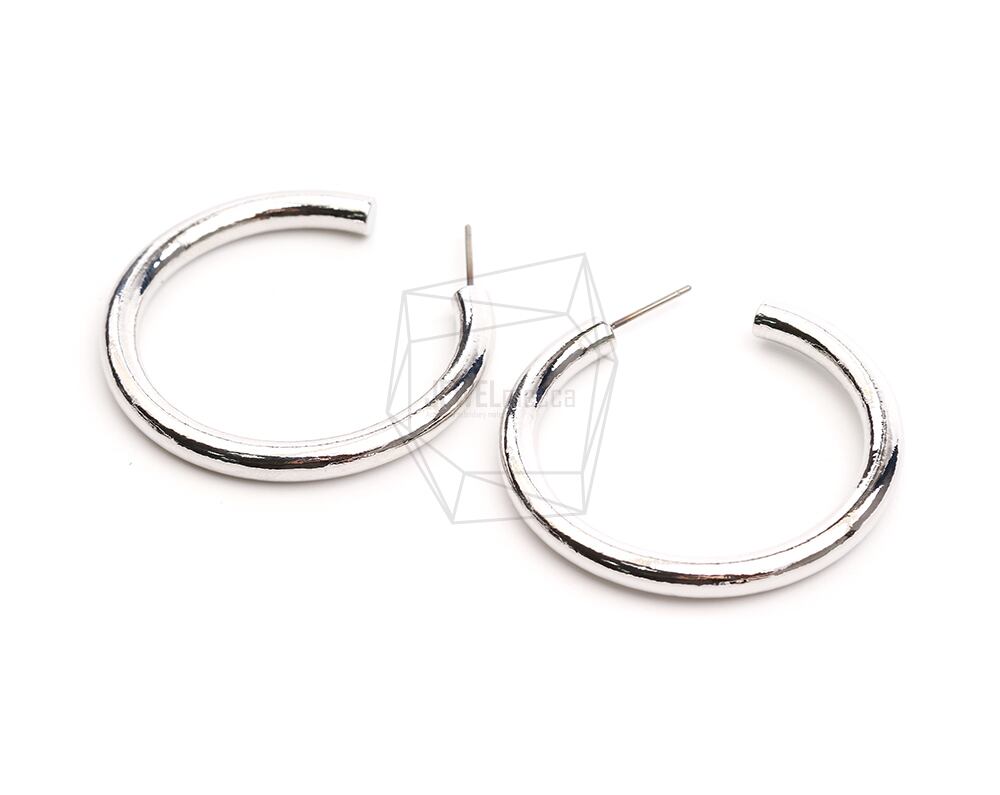 ERG-2323-R/2PCS/Round Post Earring/40mm X 40mm/Rhodium Plated Over Brass,Stainless Post