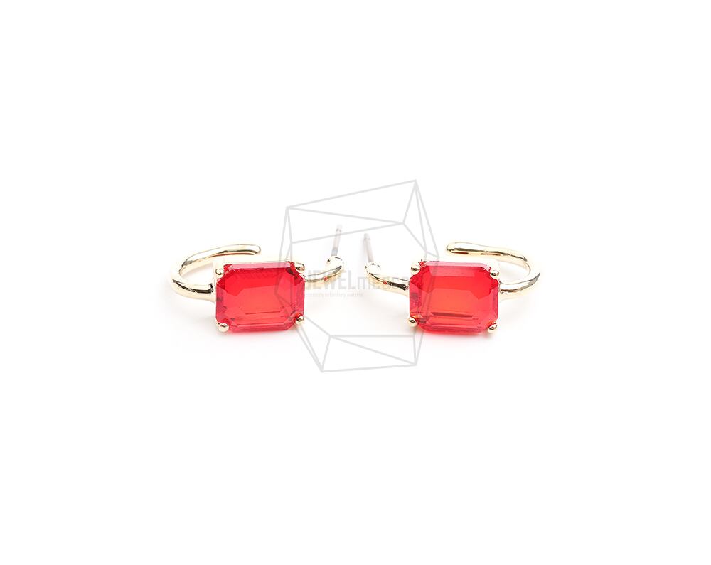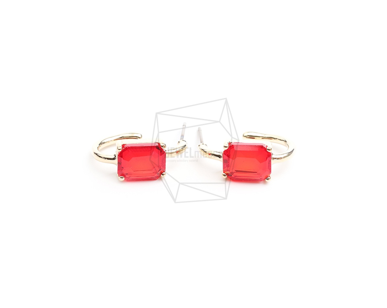 ERG-2326-G/2Pcs-Square Glass Post Earring/8mm x 20mm /Gold Plated over Brass.Titanium post