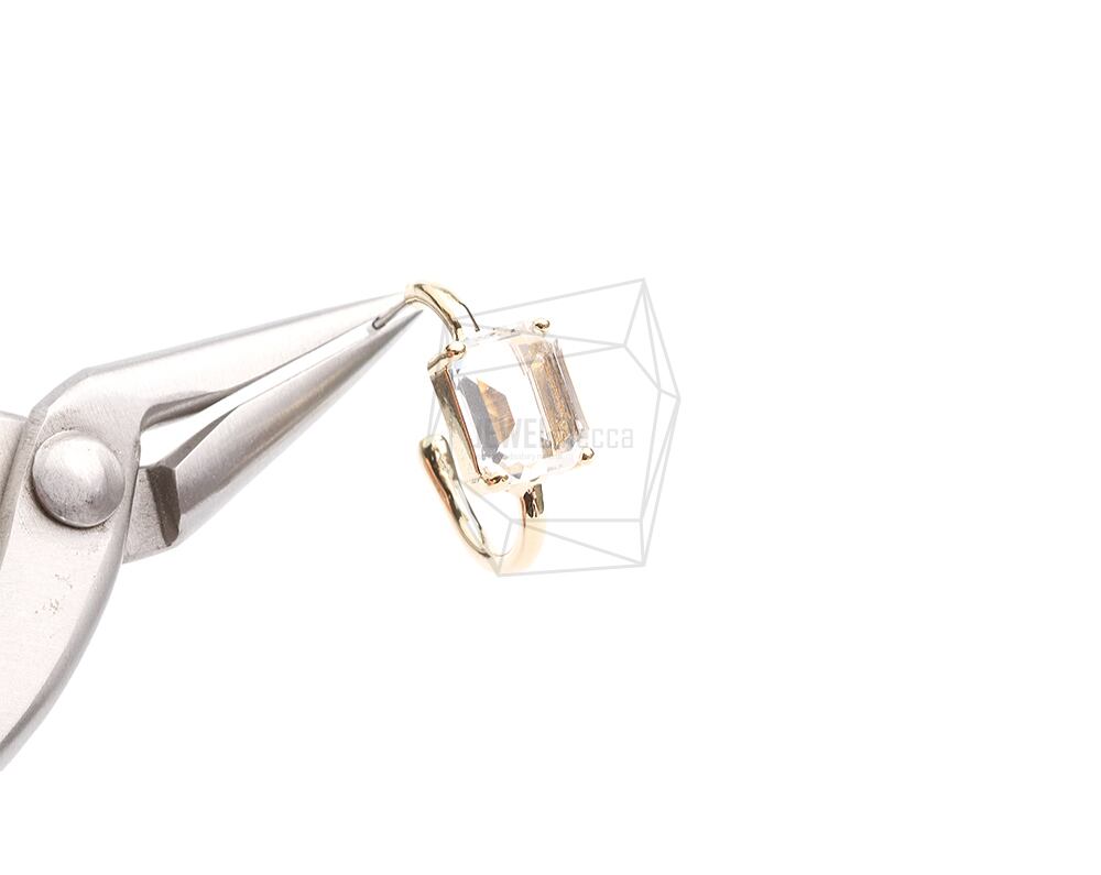 ERG-2327-G/2Pcs-Square Glass Post Earring/8mm x 20mm /Gold Plated over Brass.Titanium post