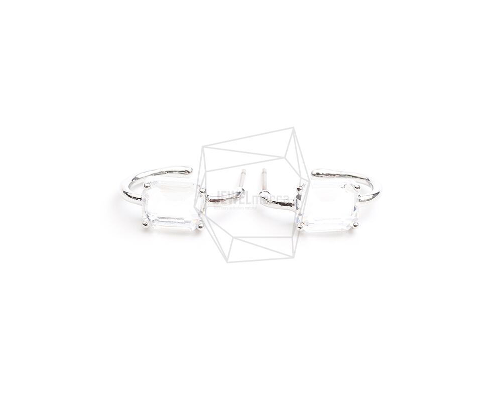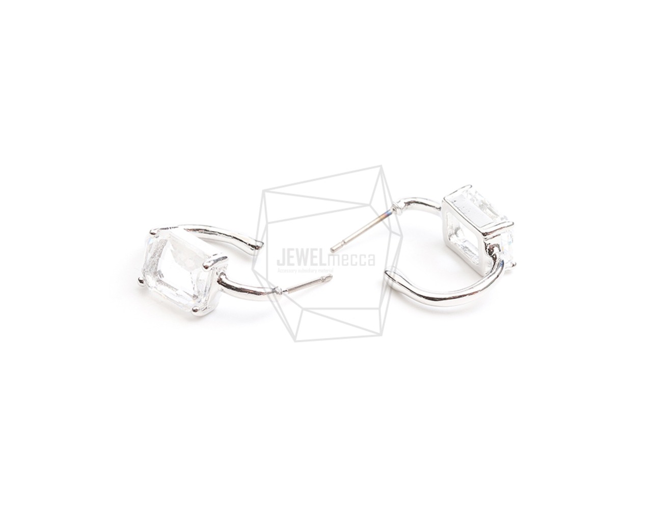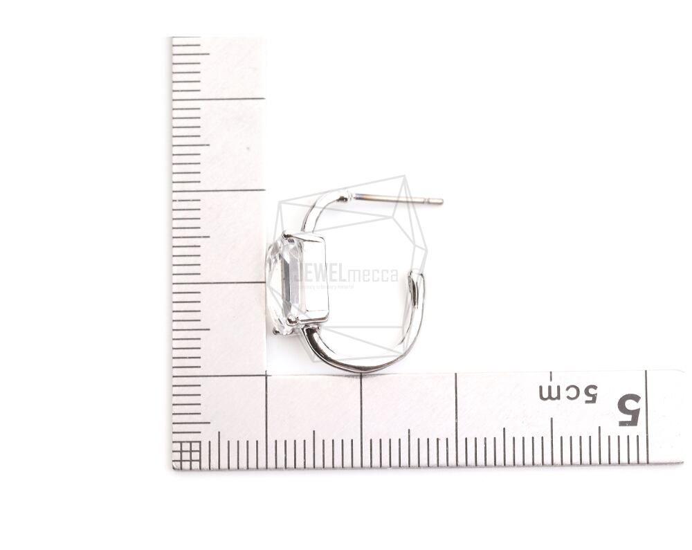 ERG-2327-R/2Pcs-Square Glass Post Earring/8mm x 20mm /Rhodium Plated over Brass.Titanium post